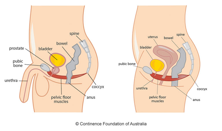 Both men and women have a pelvic floor. It is the group of muscles at the base of the pelvis and is often called your 'core'. The muscles stretch from side to side and front to back. They are responsible for bladder, bowel and sexual function.
